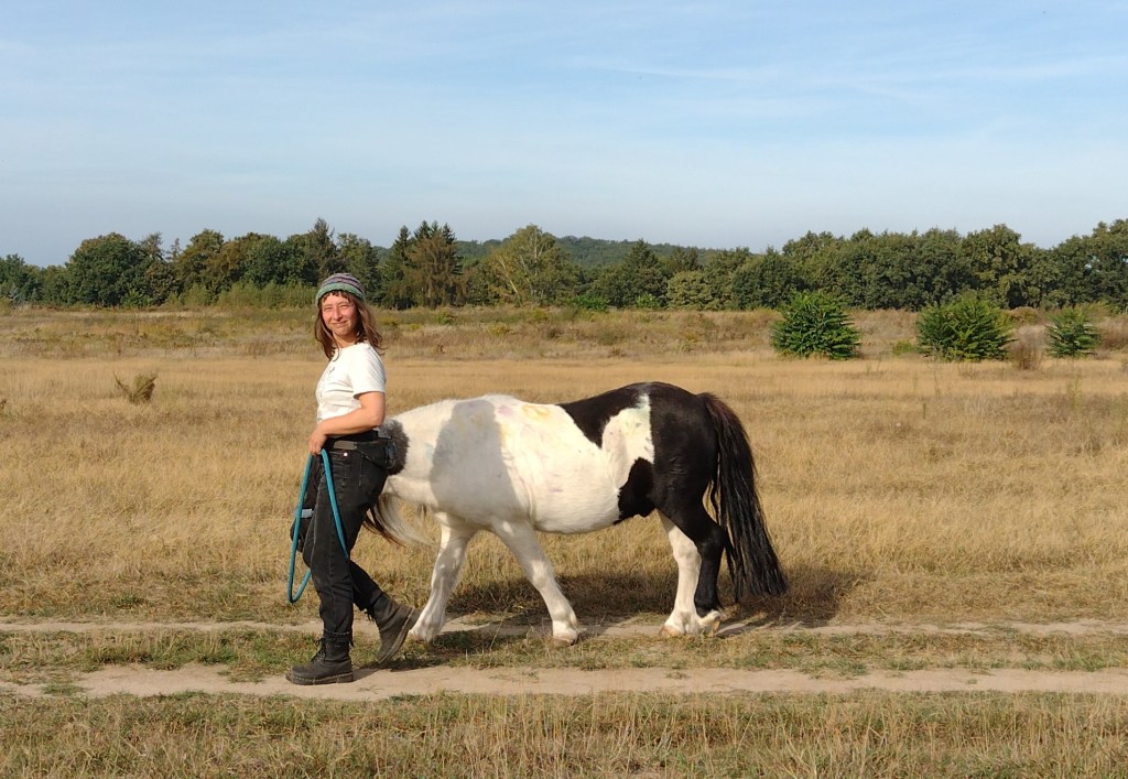 Bambi ist ein Castillonnais Wallach aus den französischen Pyrenäen. Ich bin mit ihm aus seinem einsamen Tal losgewandert, Stück für Stück in die Zivilisation – und nach mehrtägigen Anhängerfahrten und weiteren 2 Wandermonaten im Havelland angekommen. Sein französischer Name ist Al’Lambic, er ist das lustigste und schönste Pony der Welt und er liebt es unterwegs zu sein.
