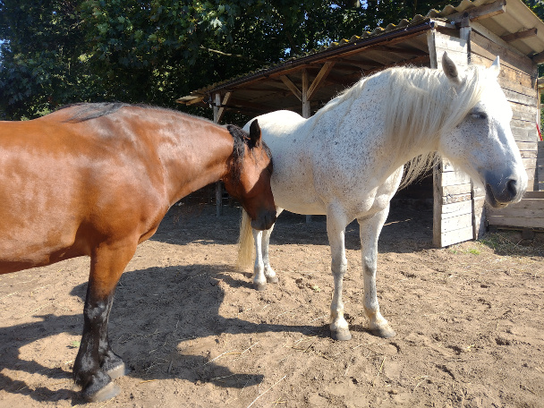 Seit dem Mai 2024 sind Padmeh und Tasleen mit dabei. Sie gehören zu Kathleen. Wir sind gerade dabei alle Pferde zu einer Herde werden zu lassen und geben diesem Prozess alle Zeit und Raum, die es braucht. Padmeh ist 8 Jahre und eine sanfte, ruhige, sensible Stute. Tasleen ist 4 Jahre und ein neugieriges, selbstbewußtes Pferdekind, die viele Ideen hat. Die beiden Stuten sind Araber-Berber und stammen von dem berühmten Guerrouanne ait Azzayani ab, geboren im Wüstenstaub von Marokko. Nun sind sie hier, in der Brandenburger Steppe!