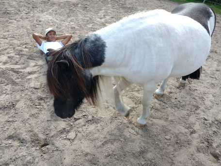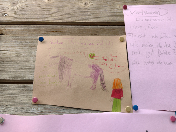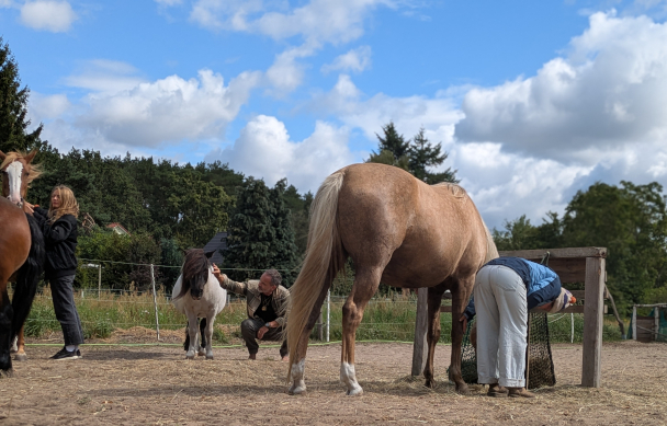 Die Feriencamps führe ich hauptsächlich in Kooperation mit Kathleen Bredenbeck durch. Ihre Pferde Padmeh und Tasleen und meine Ponys sind eine Herde geworden. Kathleen hat ein Diplom in Regie von der Ernst-Busch-Hochschule in Berlin und ist Körpertherapeutin und Coach. An ihr schätze ich die große Tiefe und gleichzeitige Leichtigkeit, mit der sie in der Arbeit mit Pferd und Mensch dabei ist.