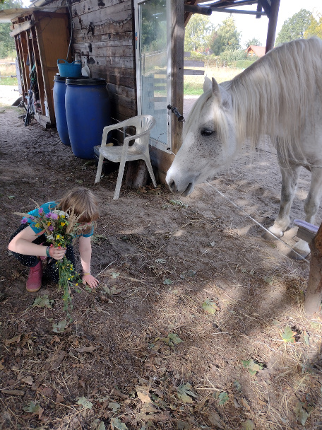 Seit ungefähr 3 Jahren beschäftige ich mich intensiv mit den Grundsätze der Gewaltfreien Kommunikation nach Marshall Rosenberg. Ich habe 2024 die Jahresausbildung für Gewaltfreie Kommunikation bei Markus Castro (Impact Institut Potsdam) abgeschlossen. Im Moment befinde ich mich in der Ausbildung zur Trainerin für Gewaltfreie Kommunikation. GFK ist für mich ein wesentlicher Grundbausteim im Umgang miteinander – und dabei meine ich das auch im Bezug auf die Kommunikation zwischen Mensch und Tier. Das Wissen um die Techniken der GFK und vor allem das Erleben der Ergebnisse ist was mich momentan fasziniert. Die Muster, die ich in mir trage kommen zum Vorschein, das wohlwollende Denken zu üben hilft und trägt Früchte..