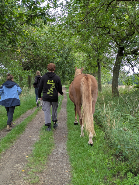Ich beschäftige mich seit mehr als 10 Jahren mit Pferdeunterricht für Kinder, und halte selbst eigene Pferde. Ich habe unzählige Stunden mit meinen Pferden in Wald und Flur verbracht, das Durchstreifen und die Nähe zur Natur, zu Wind und Wetter sind mir von unschätzbarem Wert. Seit ich 2008 auf das Buch von Pony Boy „Horse, follow closely“ gestoßen bin, ist Horsemanship in meinem Leben immer wichtiger geworden. Es folgten viele Jahre des Selbststudiums in denen ich zu meinen Vorbildern für den Pferdeunterricht Jenny Wild & Peer Classen und Anke Benson & Ian Benson gefunden habe. Mit Elsa Sinclair folge ich einer weiteren Trainerin, die mir einen ganz neuen Blick auf das Pferdetraining gegeben hat: Pferde trainieren ohne auf sie Druck auszuüben, sondern indem ich sie überzeuge mit der Qualität meiner Entscheidungen und der Schönheit unserer gemeinsamen Harmonie. Das ist für mich gewaltfreie Kommunikation mit Pferden.